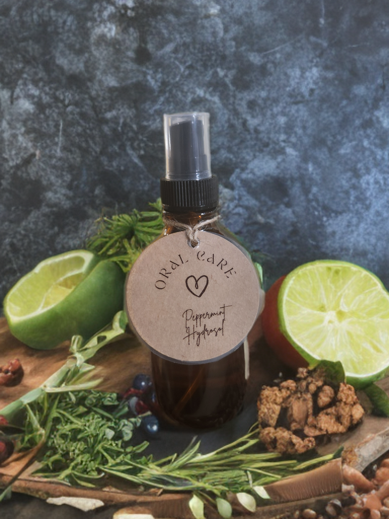 Peppermint Hydrosol freshens mouth...spray a damp wash cloth and wipe out inside of mouth.....not recommended for cats... use steam distillation and 2% organic alcohol to preserve.